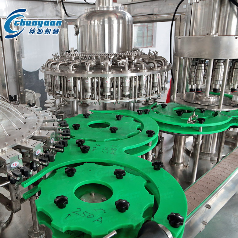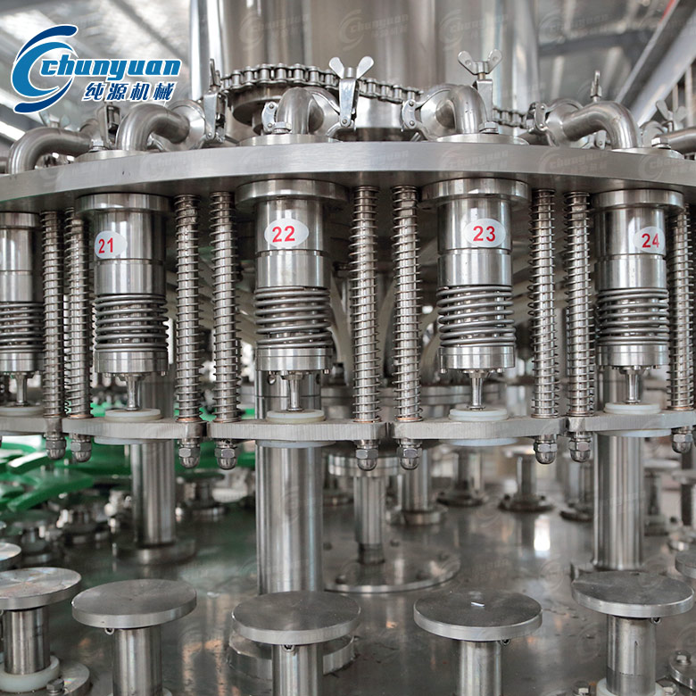 飲料機(jī)械采用高速灌裝閥,液位準(zhǔn)確無(wú)液損,確保灌裝工藝要求;