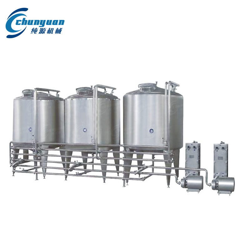 純源機(jī)械廠家供應(yīng)的全自動(dòng)CIP就地清洗系統(tǒng)用于乳品、果汁、飲料等行業(yè)物料管道和容器設(shè)備的就地清洗。CIP利用離心泵輸送清潔液在物料管道和設(shè)備容器內(nèi)進(jìn)行強(qiáng)制循環(huán),達(dá)到清洗目的而不需要對管道設(shè)備容器內(nèi)進(jìn)行強(qiáng)制循環(huán),達(dá)到清洗目的而不需要對管道設(shè)備解體,提高設(shè)備利用率,減少勞動(dòng)強(qiáng)度。