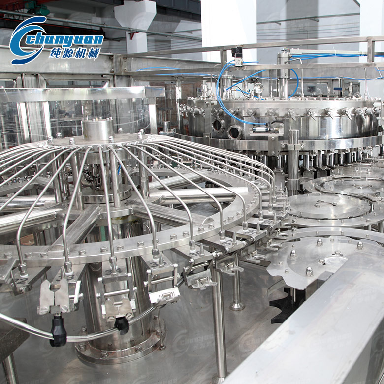 含氣飲料灌裝機械將沖洗、灌裝、封蓋三功能組合在一個機體上,全過程實現(xiàn)自動化,全自動碳酸飲料設備適用于灌裝可樂、雪碧、含氣飲料等含二氧化碳氣體的飲料。含氣飲料灌裝生產線配有CO2壓力控制精確,液位控制穩(wěn)定;設有多處卡瓶、缺瓶、缺蓋、過載等保護報警裝置,確保出品質量。